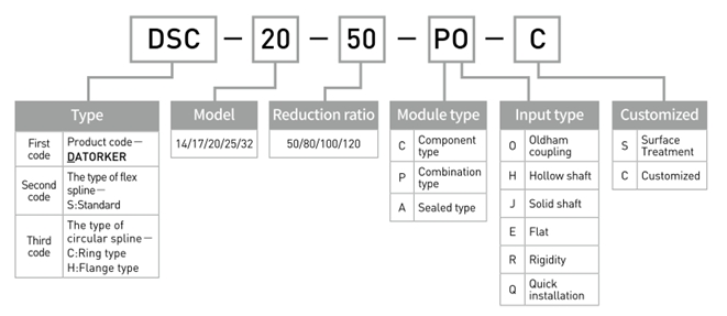 Thank you for your interest and support for HIWIN DATORKER Robot Reducer. Considering the product function and application, from July 1, 2022, the product name will be officially changed to DATORKER Strain Wave Gear, and its specification code refer the description as